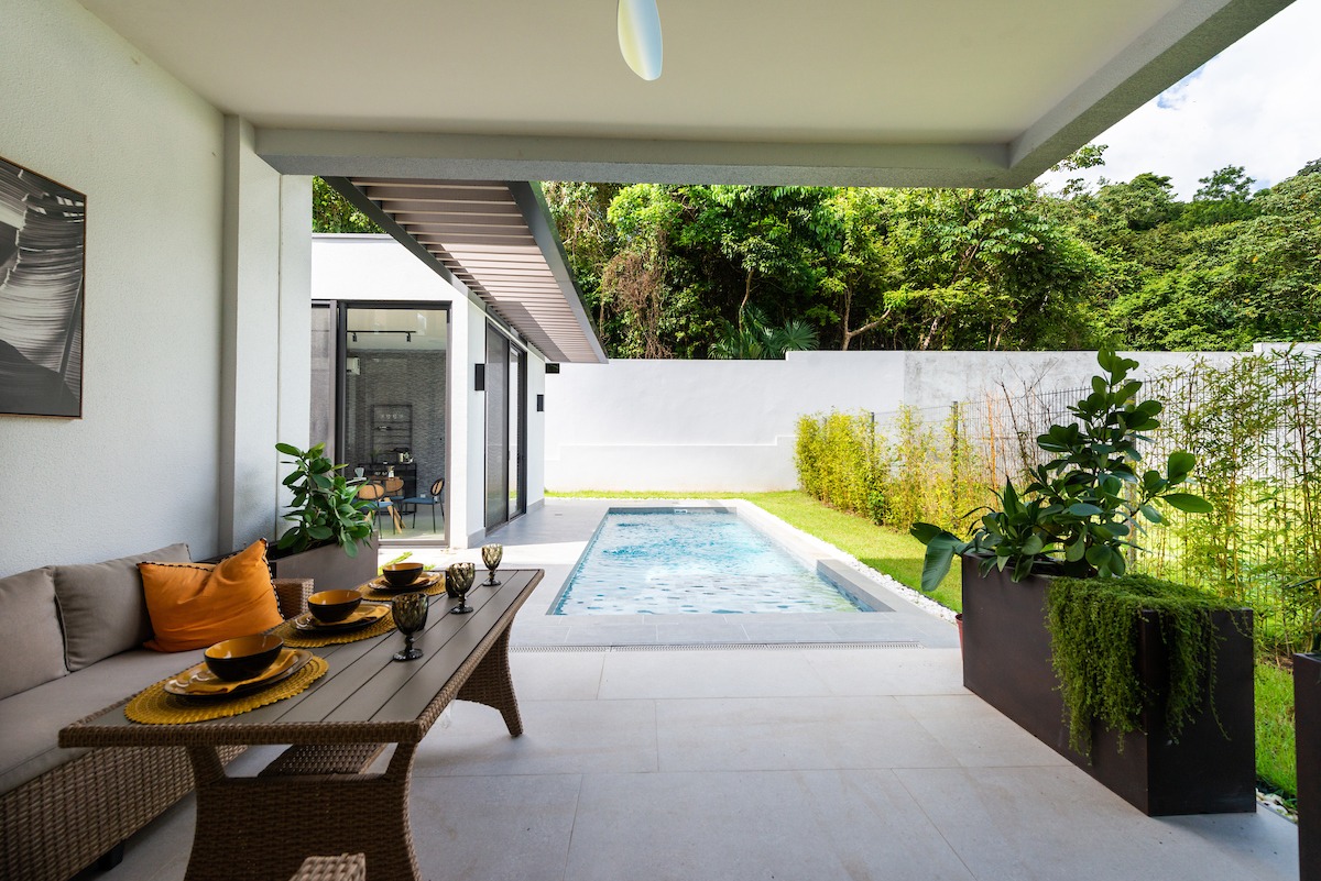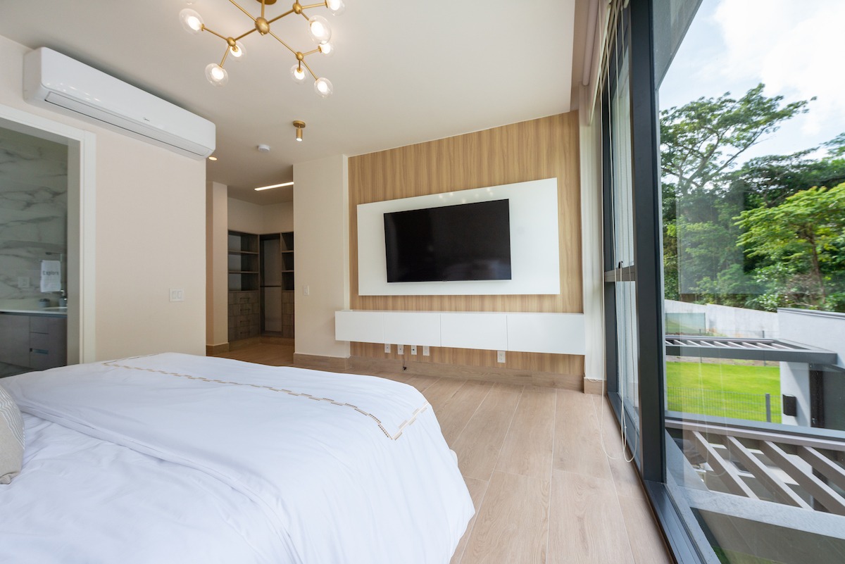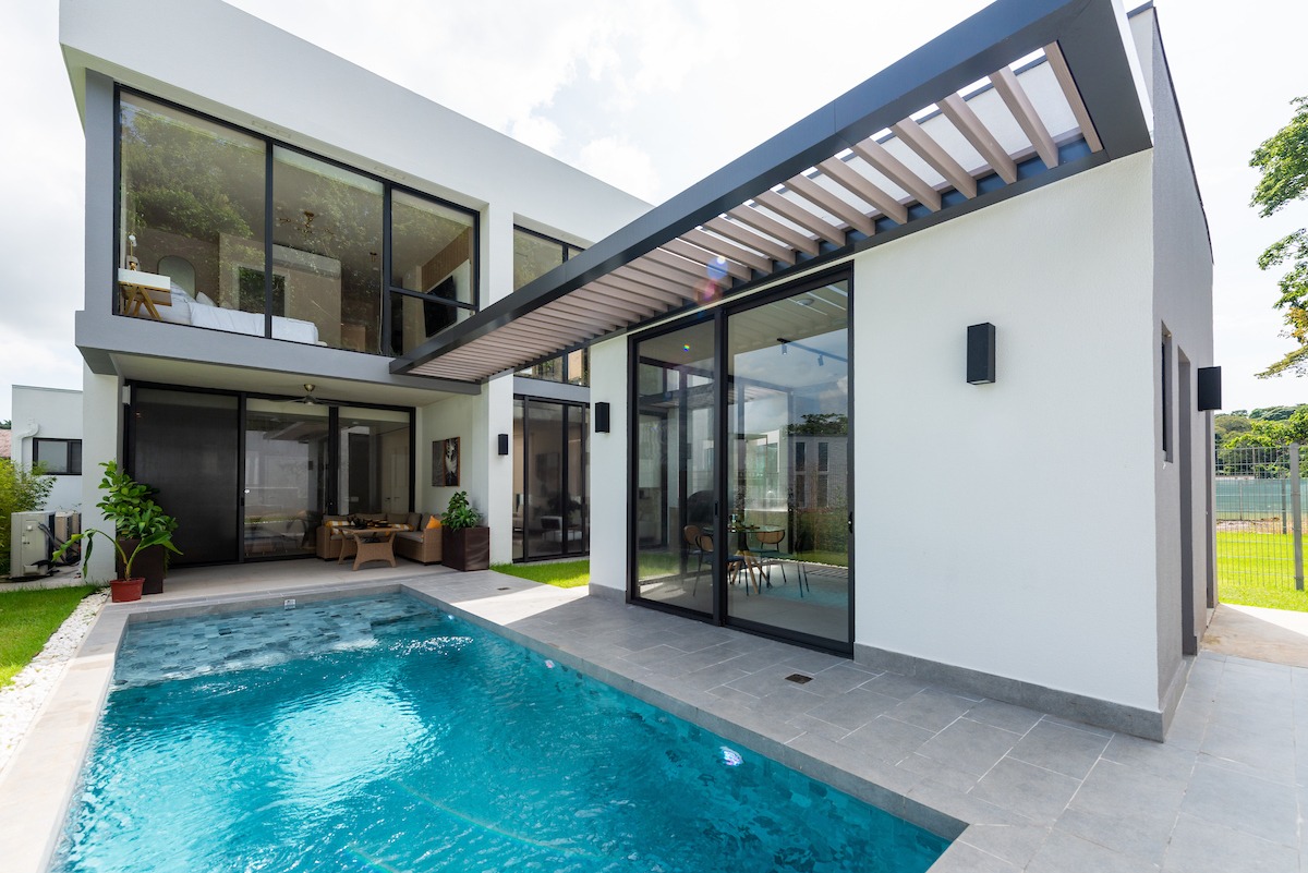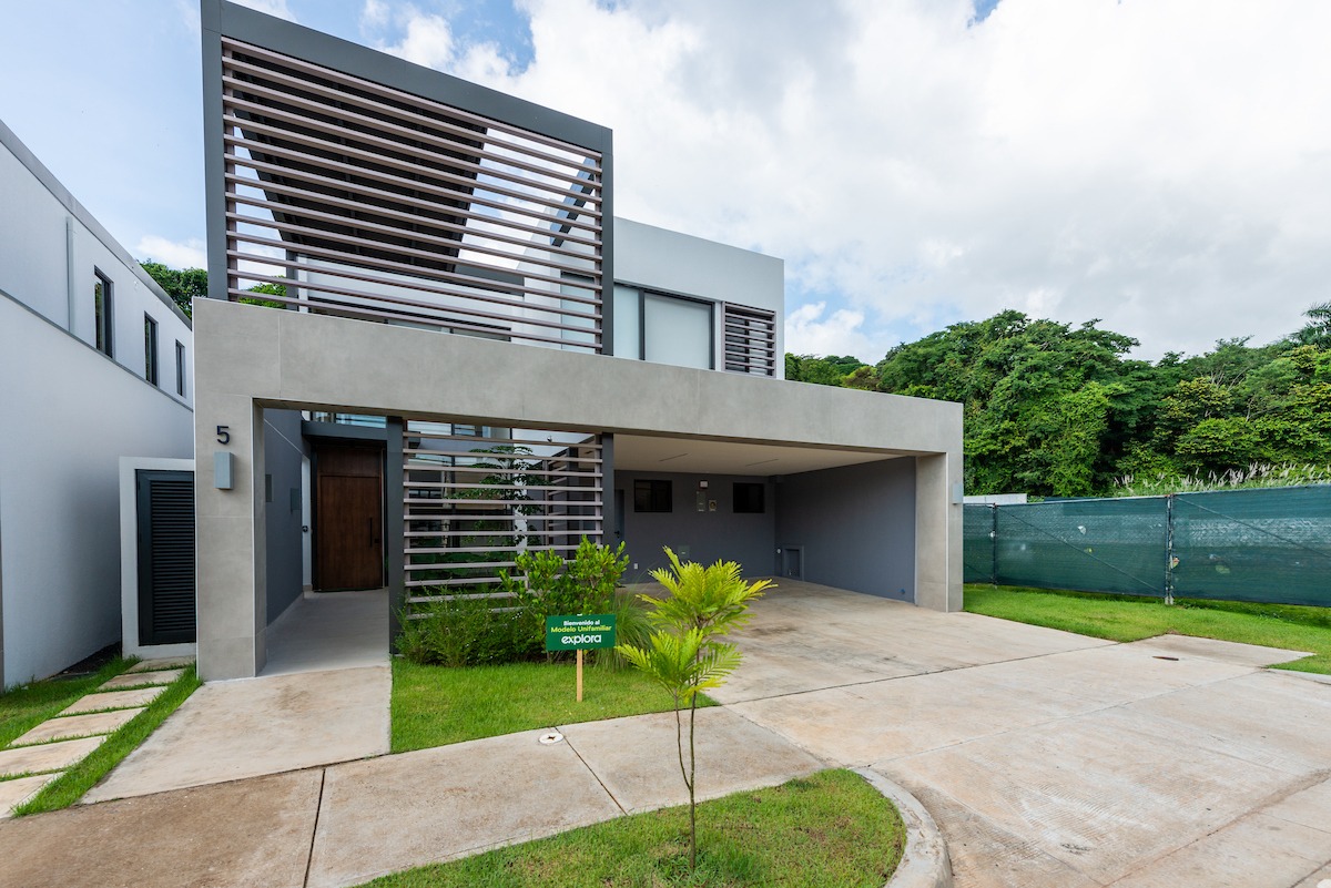 Casa Unifamiliar Modelo B, nueva, con diseño moderno y acabados de alta gama. Planificada para implementación de sistema eléctrico con planta solar, o conexión a red eléctrica regular. Amplia residencia de 300.08m2 de construcción, con 3 amplias habitaciones cada una con su baño, sala familiar en nivel superior para privacidad en familia, ubicada entre las habitaciones. Planta baja con amplia sala ecomedor, elegante escalera, terraza, cocina abierta con sobers en quarzo blanco, lavandería, cuarto y baño de servicio, accedo directo desde los estacionamientos. Estacionamientos para 2 autos. Residencia colindante con bosque, dentro de residencial amurallado, con garita de seguridad 24hrs. Residencial con hermosas áreas sociales con piscinas, lounge, gimnasio, terrazas abiertas, juegos para niños, salón de eventos, y mucho más. Comunidad con plan e integración completa, que organiza eventos para la comunidad y entre los residentes de cada comunidad (juegos entre una comunidad con otra, actividades con mascotas, etc.)