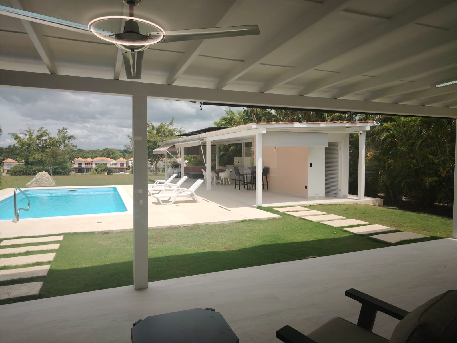 Hermosa Villa con Piscina, en comunidad de Playa, amurallada, con garita de seguridad 24hrs, consta de Hotel-Resort para servicios y disfrute de los residentes y huéspedes, Desarrollo con hermoso Campo de Golf de 18 hoyos, Frente de Playa en el residencial, Hermosas Areas Sociales. Con Jardines, Parques Infantiles, Membresía al Club de Golf, Afiliación al Hotel, electricidad soterrada, Lagos Artificiales, Arboles.