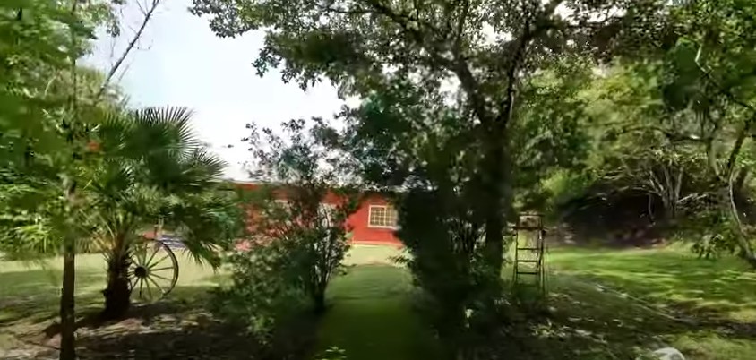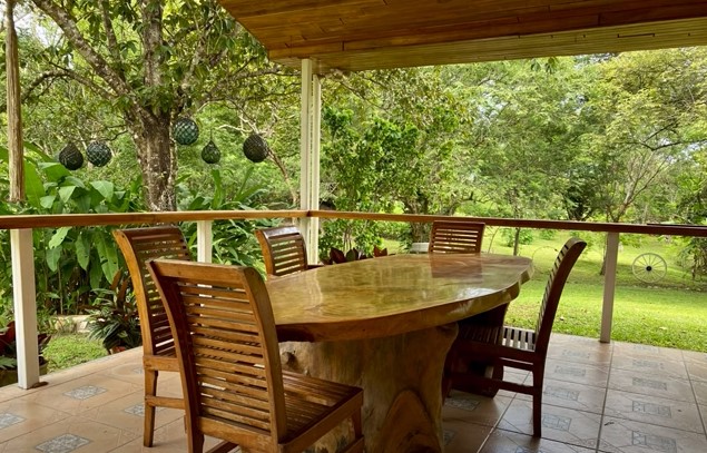 Casa principal con amplia terraza en forma de “L”, bordeando la propiedad.