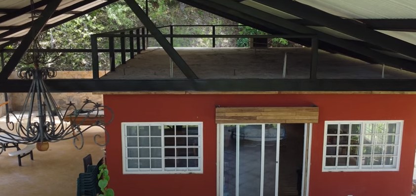 Amplia terraza rodeando la casa + terraza en la parte superior, en la azotea o techo de la casa