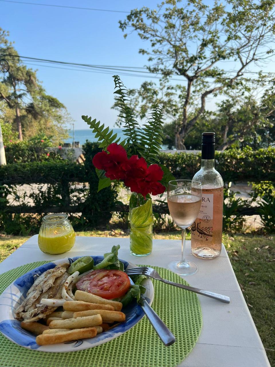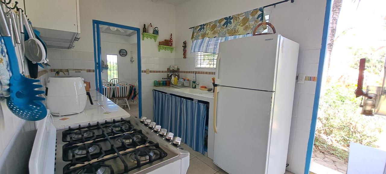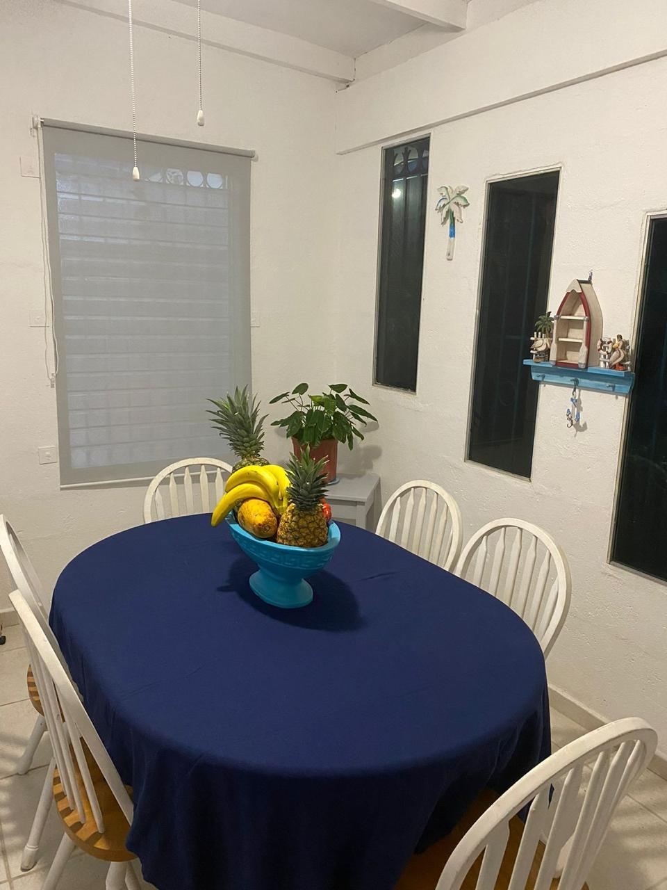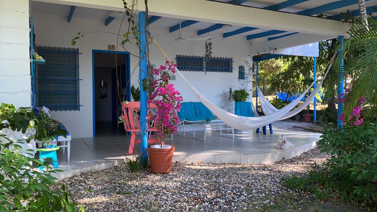 Casa de 3 recámaras, 1 baño interno + 1 baño externo, sala, área de comedor separada, cocina, terraza frontal + terraza posterior, área de patio con paraguas y mesas, lavandería en la parte de atrás (no incluye lavadora y secadora).