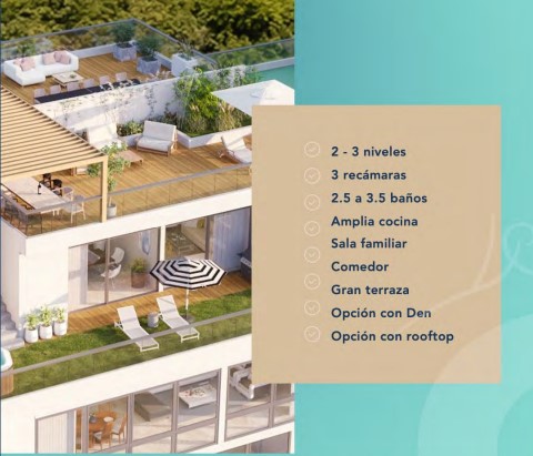 Apartamento tipo Town-Home, con vista al mar, cómodo metraje con 2 o 3 niveles para mayor disfrute de tu vista y privacidad